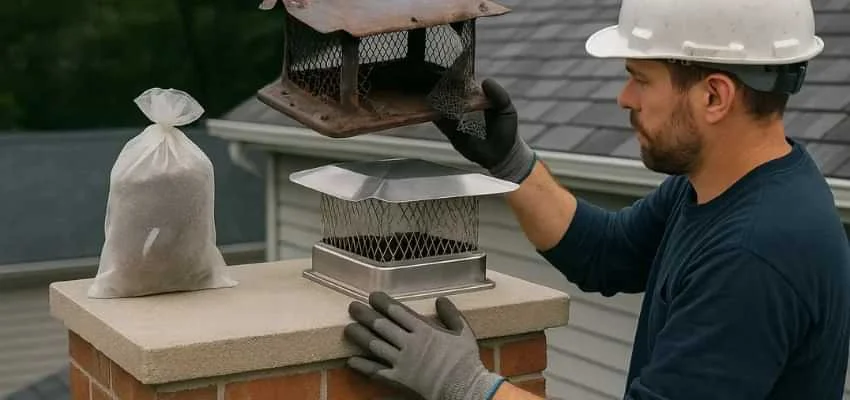 Chimney Sweep Grapevine delivers precise Chimney Cover Replacement that fits right sheds water and boosts curb appeal so your chimney stays dry and safe throughout The Legacy, Grapevine all year.